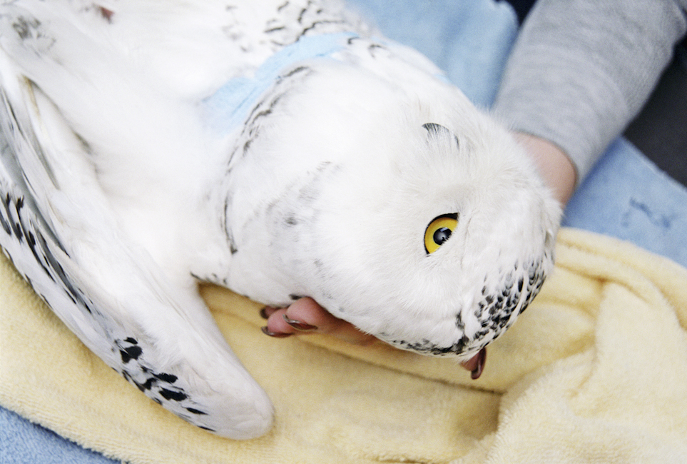 Nanjiska, a Snowy Owl with extensive wing damage, was a resident in the center’s outreach program.