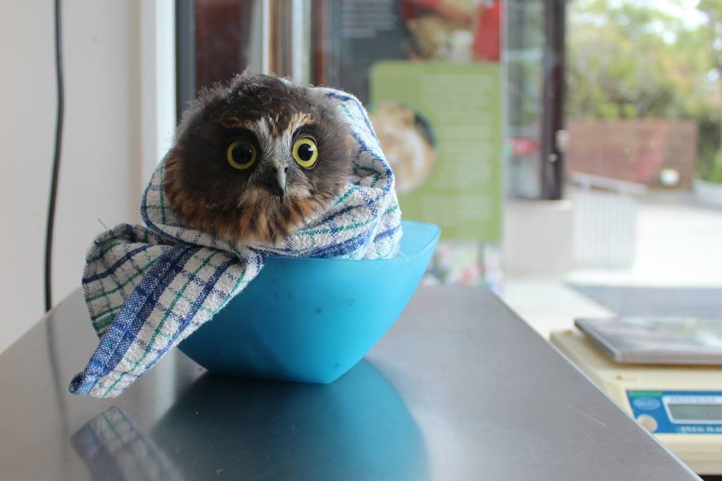Our vets in the Nest Te Kōhanga have cared for a Morepork (Ruru) chick for the last two months, and now he has his adult feathers it’s time for him to venture out into the big wide world. This native youngster will be released in two stages. He’s gone to HUHA (Helping You Help Animals) for his ‘soft release’ – two weeks in an aviary with a lamp outside to attract moths for him to practise hunting. Then the door will be opened so he can fly away and hunt for himself, but still come back for food if he needs.
