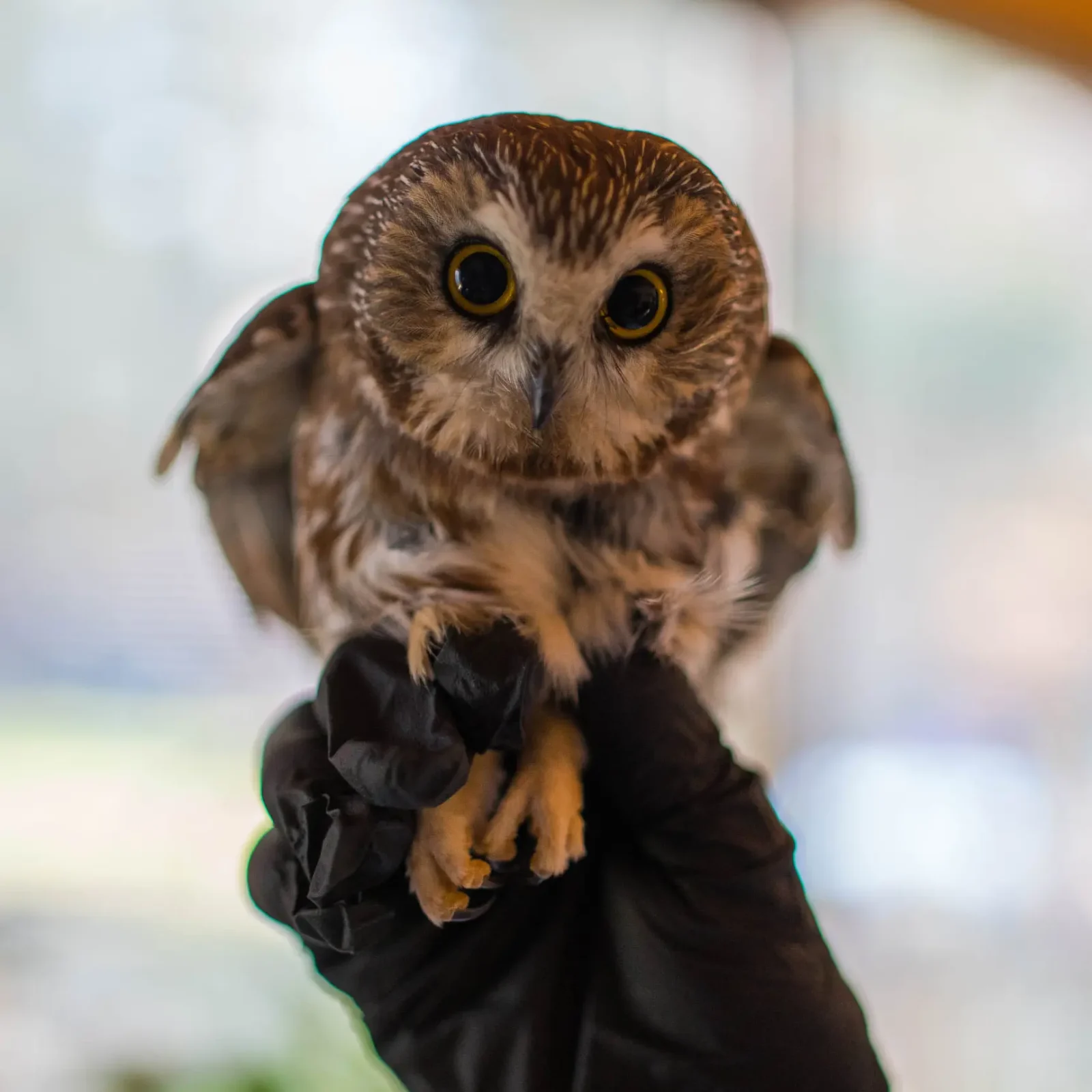 “He/she was a little Saw-whet owl,” she later posted on the Ravensbeard Wildlife Center Facebook page, adding that they are the smallest owls in the region. And although tiny, it would be unusual for a baby owl to appear in winter. This was an adult – dehydrated and hungry but otherwise unharmed.