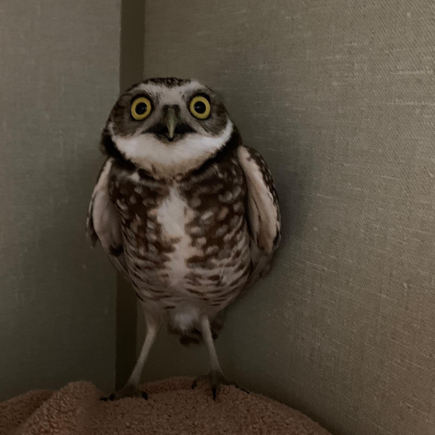 The Burrowing owl is doing much better. Check out his legs! So adorable and expressive.